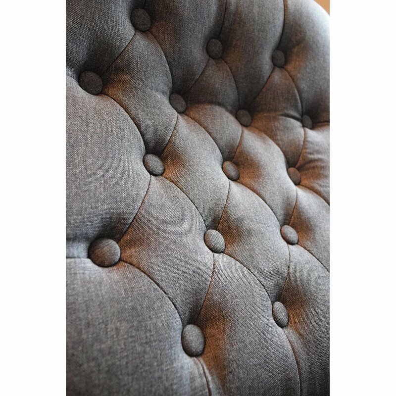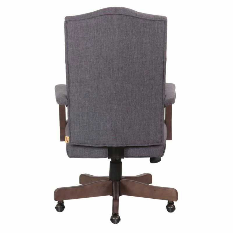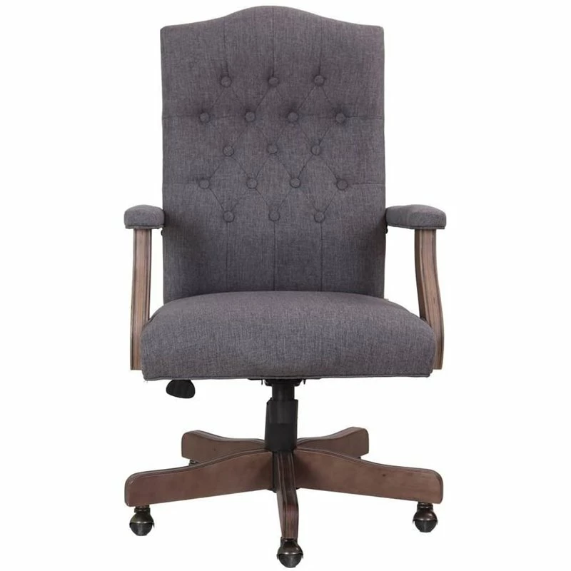 A classic executive chair design gets a modern face lift without sacrificing quality and comfort. The on-trend gray commercial grade linen upholstery and coordinating driftwood finish frame with antique brass finished caste make this high-back swivel office chair an obvious fit in your work place or home office. Adjust the height of the chair to accommodate your needs throughout the day. Crafted with a sturdy wood frame and featuring a wide base for durability, you can enjoy this chair at your desk for years to come.