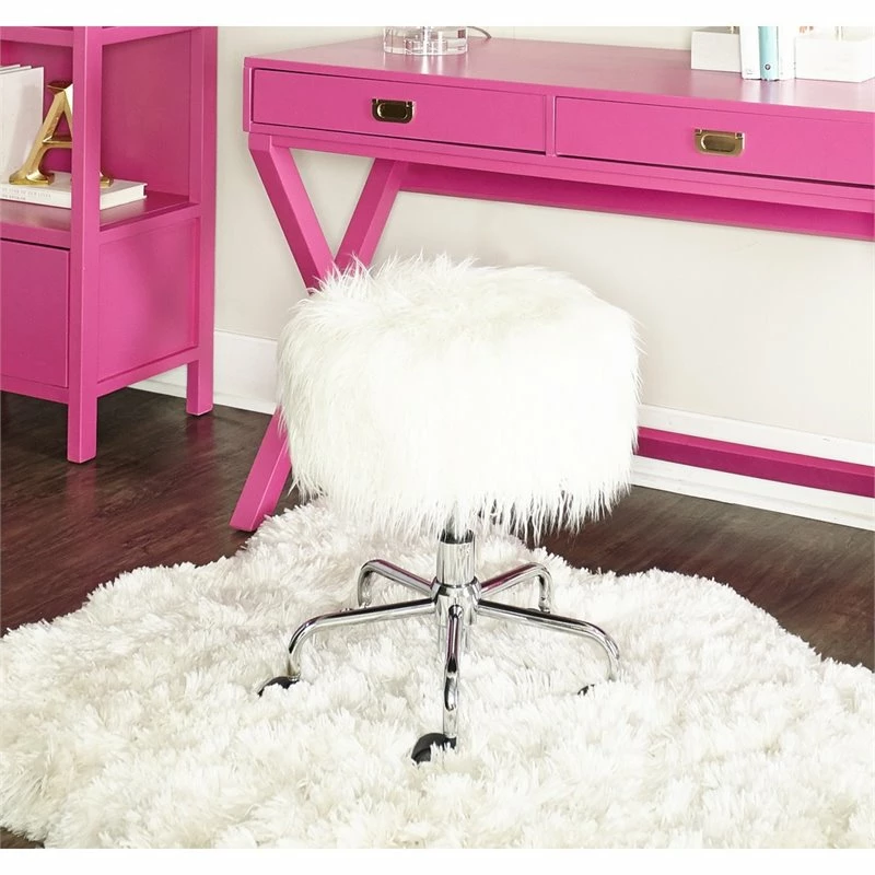 Lowest price online On all Riverbay Furniture Faux Fur Stool in White – RF-1814226