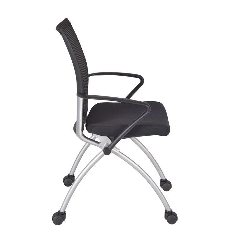 This Scranton & Co is a professional, innovative nesting chair that allows for maximum comfort, durability and support. A mesh spring-bound back conforms to users’ needs and the black fabric seat flips up to provide a unique nesting option. The stylish silver tubular steel base features casters for easy mobility. The chair looks great in sets and is perfect for large training rooms, labs, classrooms or as a modern guest chair.