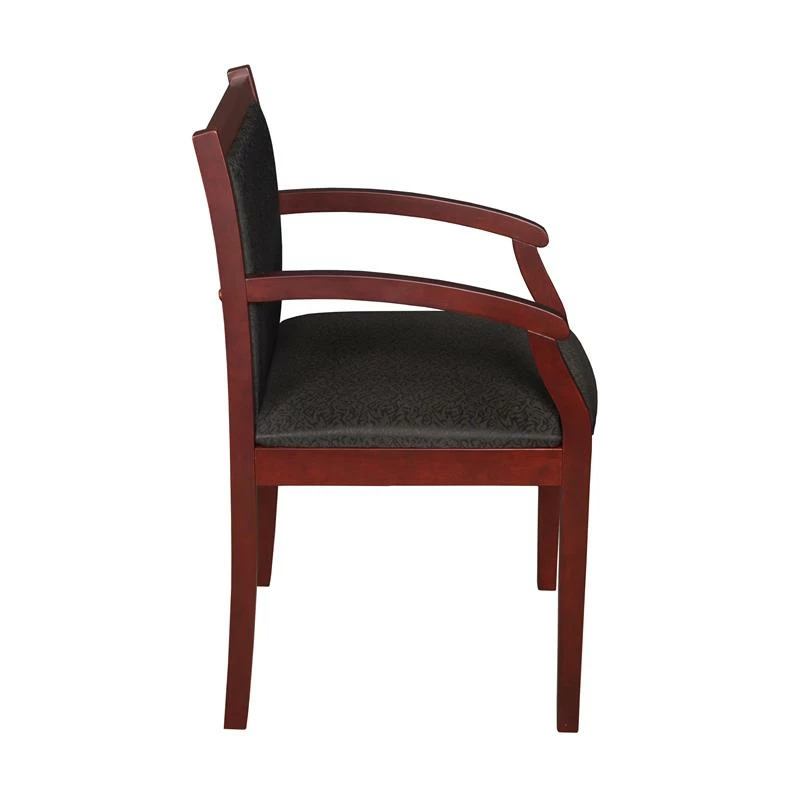 Timeless contours with traditional styling make the choice for traditional and transitional offices alike. The sturdy hardwood frame is finished in a rich Mahogany hand-rubbed veneer. Padded seat and back cushions are upholstered in Black Zenith fabric with an attractive, subtle pattern that is sure to please.
