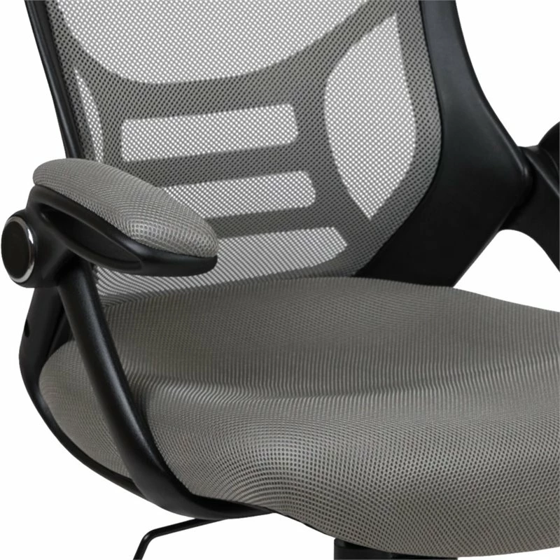 Fall into comfort on this ultra-padded swivel office chair that’ll add personality to your home office or professional office space. Put that old chair to rest, having the support of an ergonomic office chair will help improve your attitude when you no longer must sit in discomfort. This modern office chair is equipped with a lever to control the seat height and activates the seat recline. Mesh office chairs are popular due to their ventilated mesh material that allow air to circulate to your back, keeping you cool and calm. Paired with a contoured padded seat with pressure relieving waterfall edge and a high back this executive office chair will integrate into any space. If you like working with your chair raised high a flip-up arm chair is perfect allowing you to flip the arms upward like an armless chair while pulling yourself close to your desk. You’ll have no problem taking charge of your workday perched on this high back ergonomic office chair with flip-up arms. You’ll wish you had purchased this chair sooner, whether as a personal purchase or to accommodate your entire staff.