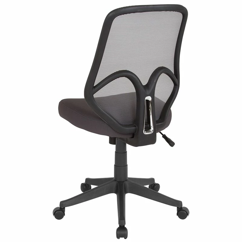 Breathe new life into your office, dorm or home office with this comfortable High Back Mesh Chair. The transparent mesh back allows air to circulate, keeping you cool no matter how high the pressure gets. The swivel seat is foam padded and has a waterfall front for leg comfort. Built-in lumbar support helps prevent back strain and muscle fatigue. Raise and lower the seat using the pneumatic seat height adjustment lever, conveniently located below the seat. The heavy-duty, nylon base with dual wheel casters makes it easy to roll across the floor. Whether you’re studying, browsing or on a tight deadline, this stylish chair will keep you cool and comfortable throughout your busy day.
