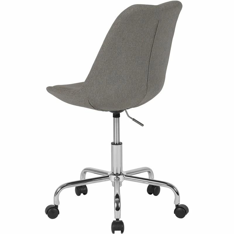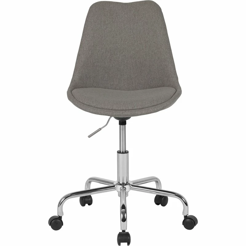 Trendy best describes this swivel task chair to enliven all work spaces. The tapered back design adds character to this desk chair. It’s upholstered in a colorful fabric and has a fixed seat pad. The mid-back chair features a molded design that is created to support the mid-to-upper back region. Chair swivels 360 degrees to get the maximum use of your workspace without strain. The pneumatic adjustment lever will allow you to easily adjust the seat to your desired height. This office chair has a chrome base with dual wheel casters that makes it easy to roll across the floor. The colorfully upholstered task chair is a great choice for your work or home office.