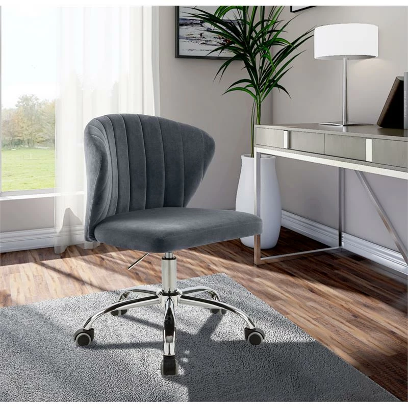 Best Pirce ⭐ Scranton & Co Swivel Adjustable Gray Velvet And Chrome Office Chair ✨