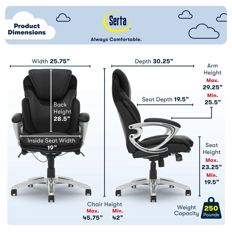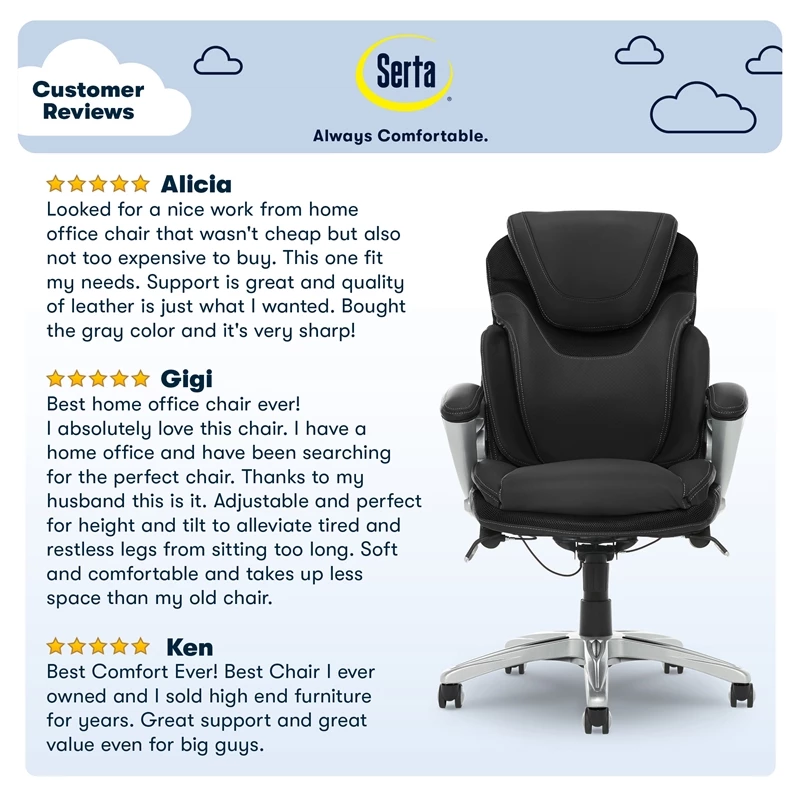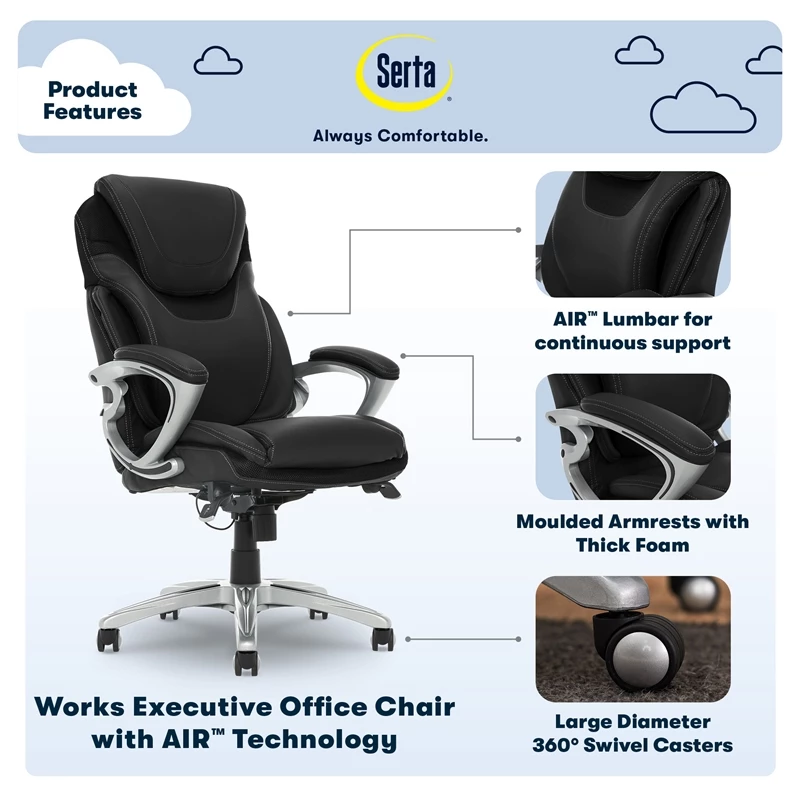 Buy 🔥 Serta At Home Serta Bryce Executive Office Chair With AIR Technology Black Bonded Leather 🥰