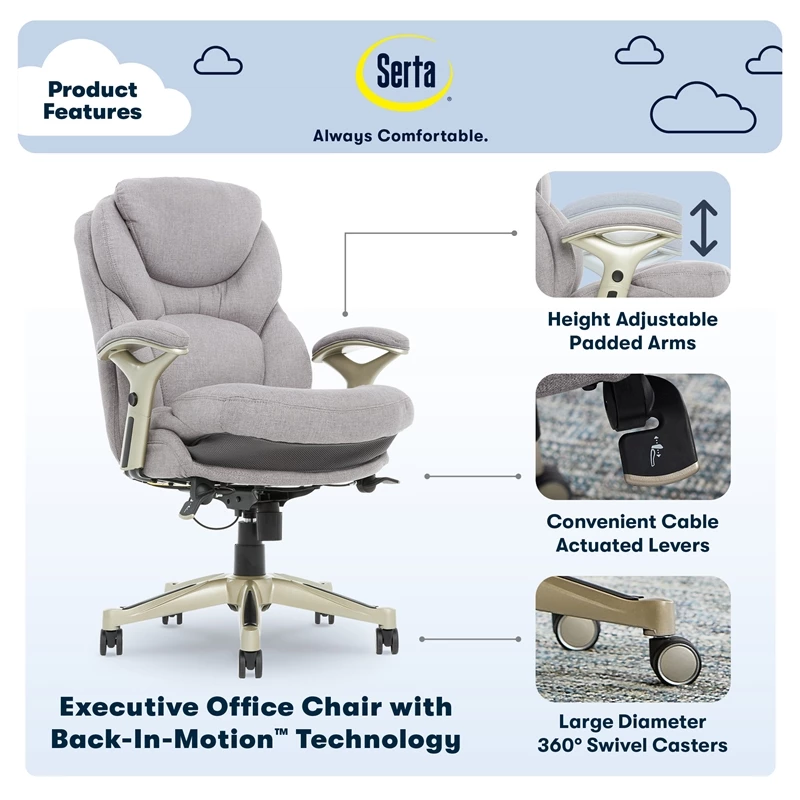 Budget 🤩 Serta At Home Serta Ergonomic Executive Office Chair With Back In Motion Technology Light Gray ✨