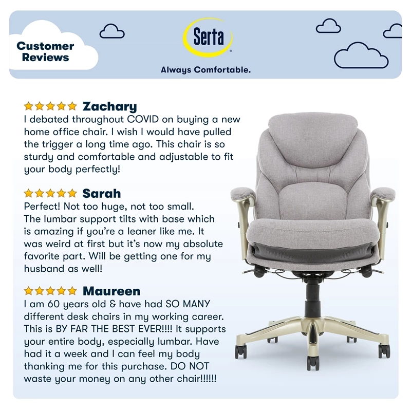 Be the first to review “Budget 🤩 Serta At Home Serta Ergonomic Executive Office Chair With Back In Motion Technology Light Gray ✨” Cancel reply