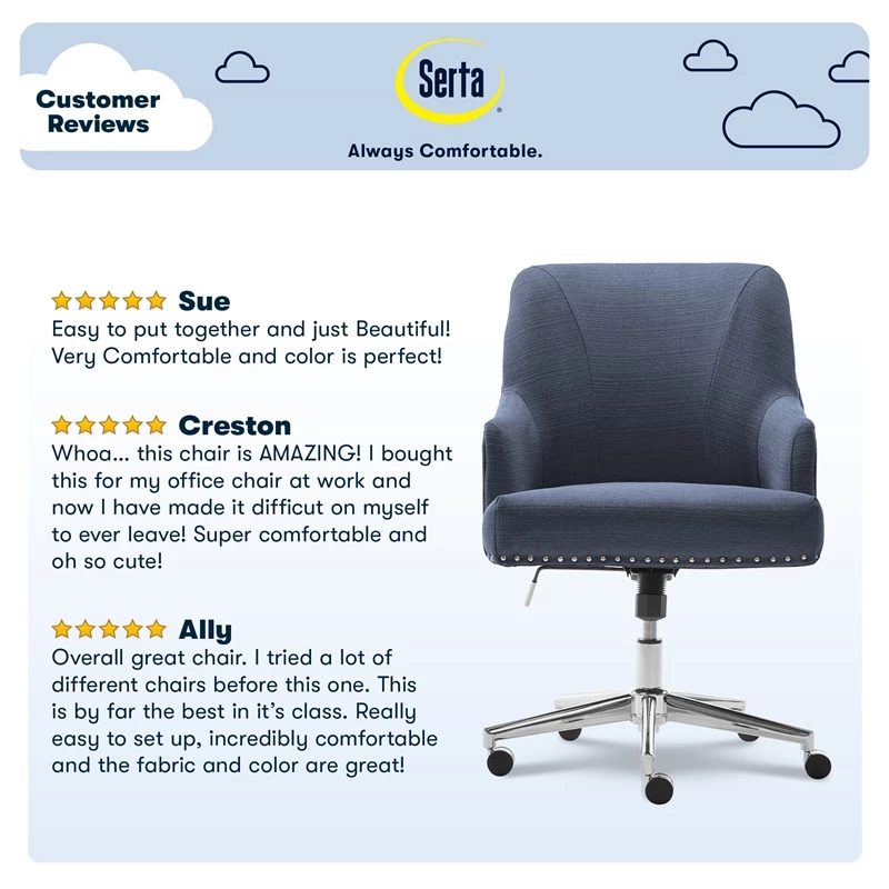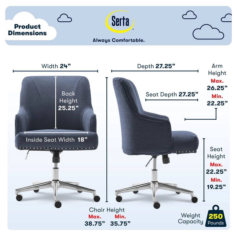 New ๐ Serta At Home Serta Leighton Home Office Chair With Memory Foam Blue ๐งจ