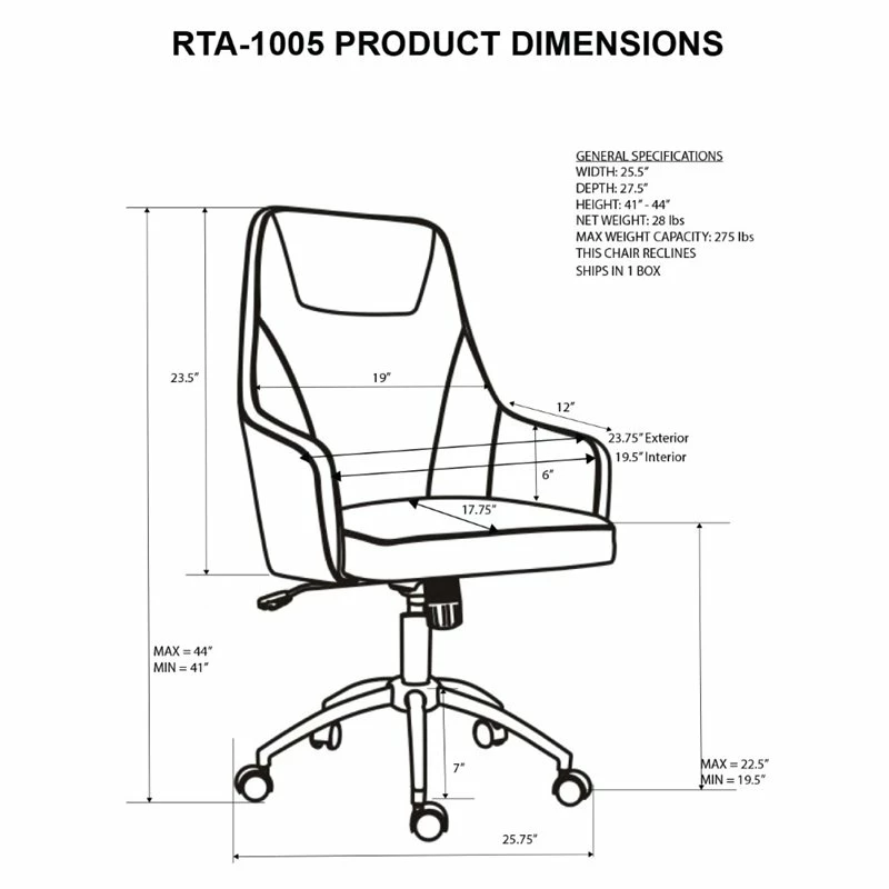 SKU: RTA-1005-GRY Categories: Fabric, Office Chairs