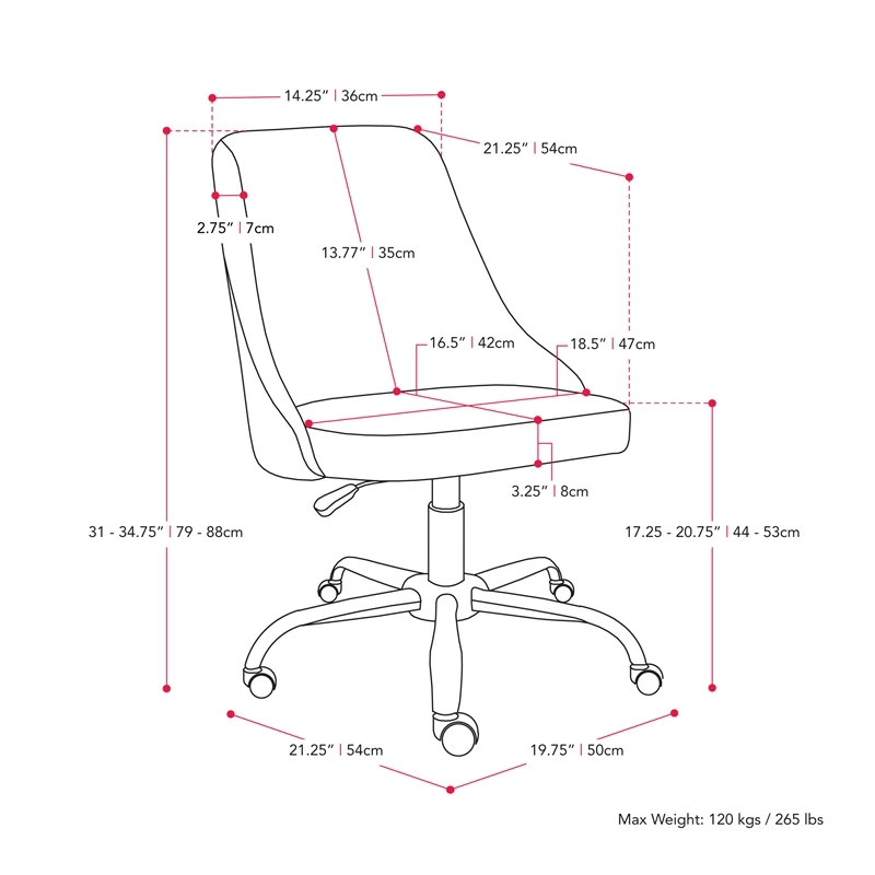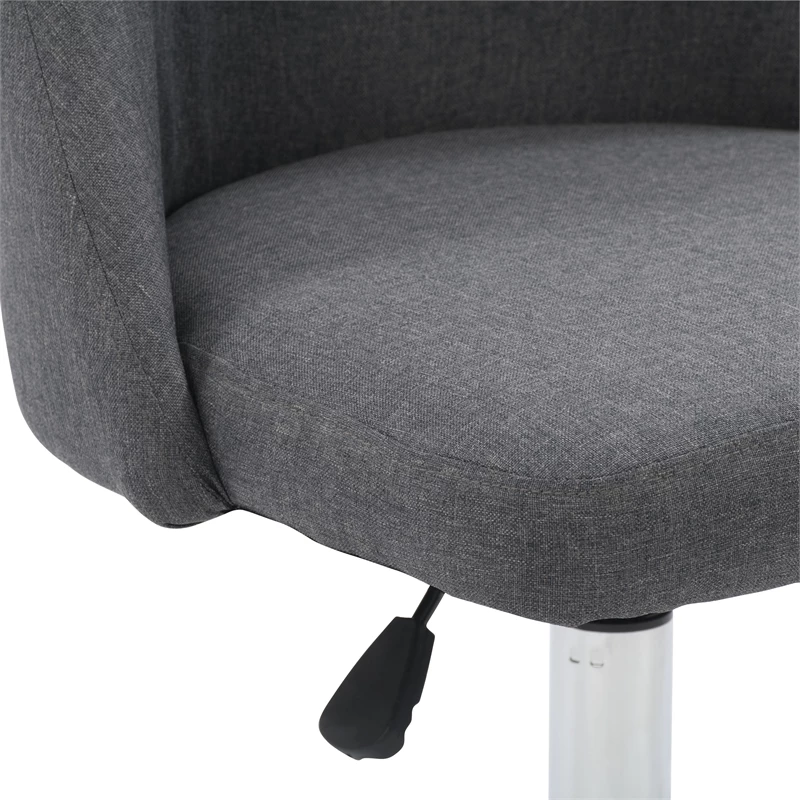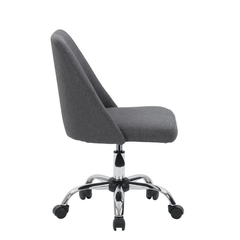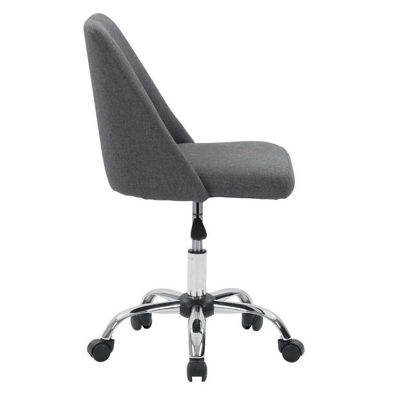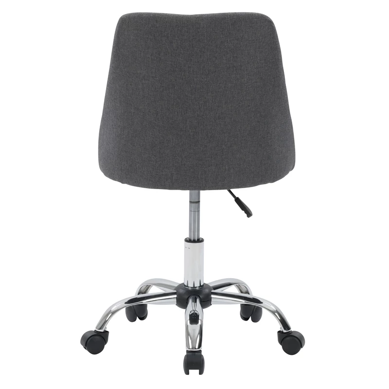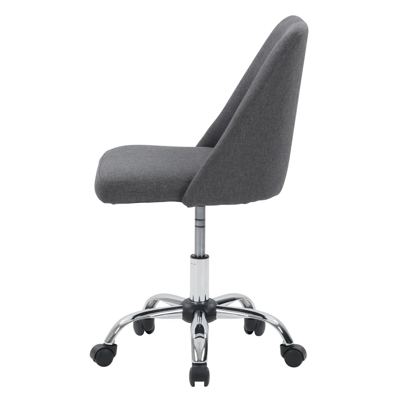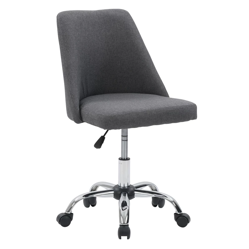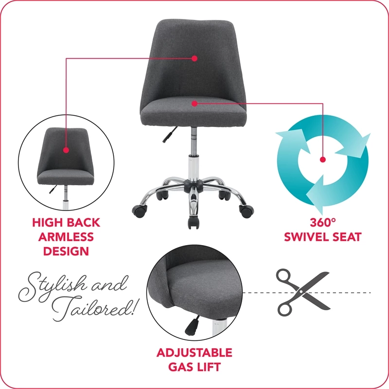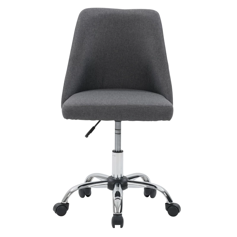 Modern and stylish, this desk chair is just what your home office needs. It showcases an armless design with a soft, comfortable seat cushion. This chair is upholstered in a classic woven upholstery and supported by a durable steel frame. With a five-star chrome base that helps you move from task to task with ease, it’s the perfect finishing piece for any workspace.