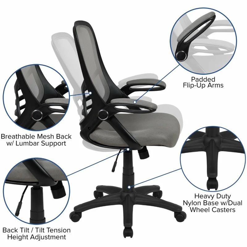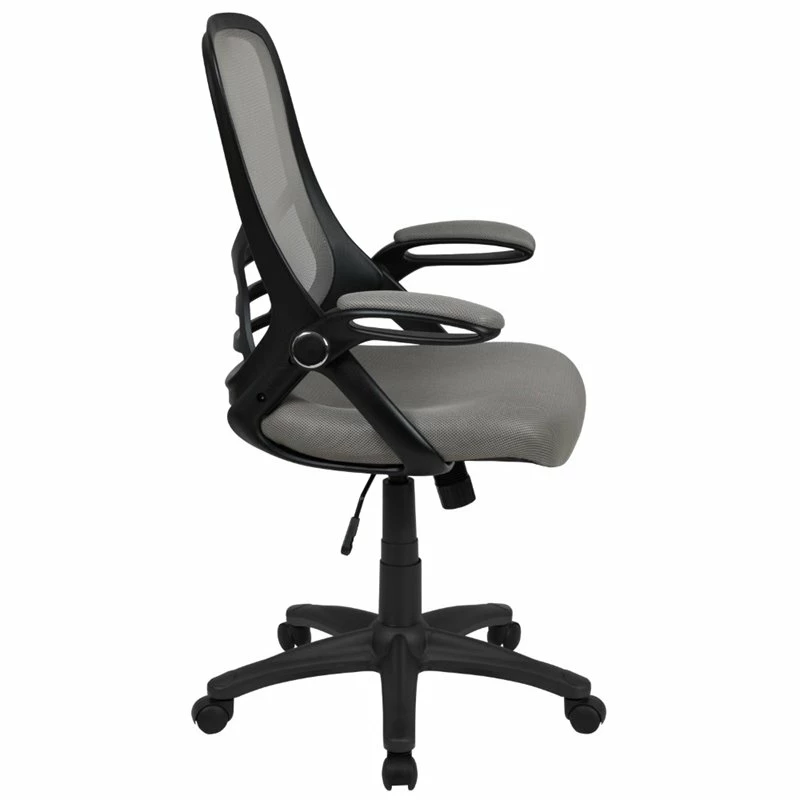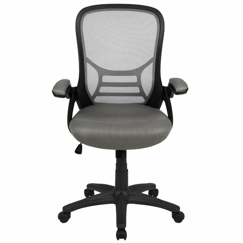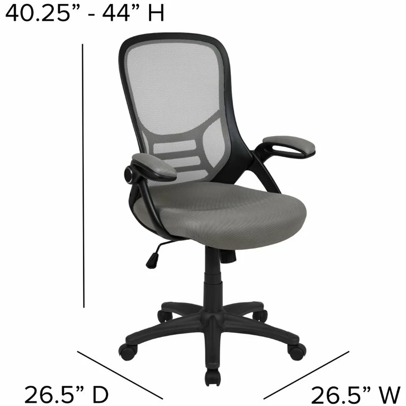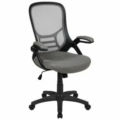 Fall into comfort on this ultra-padded swivel office chair that’ll add personality to your home office or professional office space. Put that old chair to rest, having the support of an ergonomic office chair will help improve your attitude when you no longer must sit in discomfort. This modern office chair is equipped with a lever to control the seat height and activates the seat recline. Mesh office chairs are popular due to their ventilated mesh material that allow air to circulate to your back, keeping you cool and calm. Paired with a contoured padded seat with pressure relieving waterfall edge and a high back this executive office chair will integrate into any space. If you like working with your chair raised high a flip-up arm chair is perfect allowing you to flip the arms upward like an armless chair while pulling yourself close to your desk. You’ll have no problem taking charge of your workday perched on this high back ergonomic office chair with flip-up arms. You’ll wish you had purchased this chair sooner, whether as a personal purchase or to accommodate your entire staff.