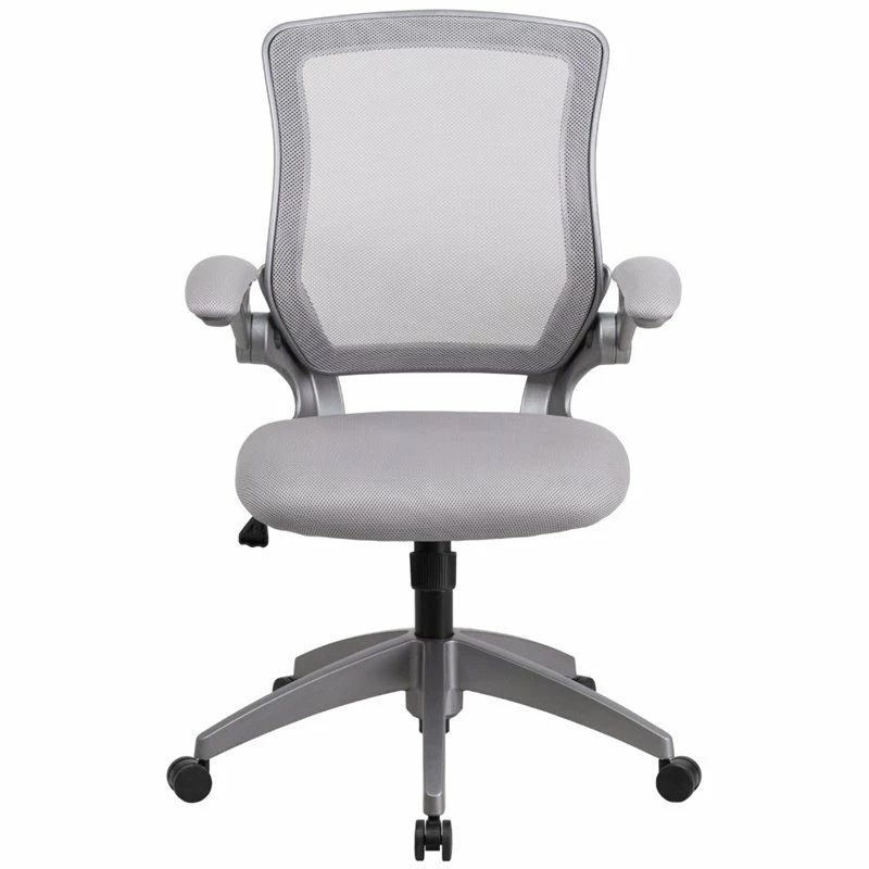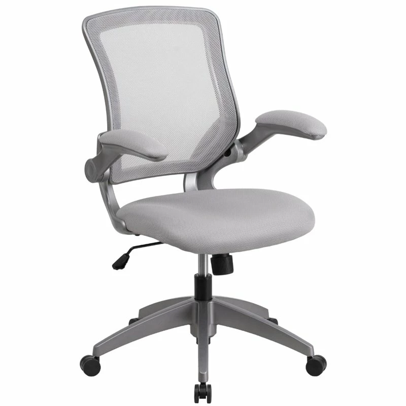 If you’ve never owned a mesh back chair, then you’re in for a real treat with this gray mesh ergonomic task chair. The ventilated design allows air to circulate to your back, keeping you cool and comfortable enabling you to concentrate on the task at hand and increasing your productivity. This chair has important features such as a flexible mesh back with lumbar support, pneumatic seat height adjustment and the ability to recline/rock back and forth with the tilt lock mechanism that make your purchase worthwhile. Padded flip-up arms allow you to get the chair under your desk and closer to your workspace while the waterfall seat reduces pressure on your legs for maximum comfort. Chair easily swivels 360 degrees to get the maximum use of your workspace without strain. The design of this ergonomic chair makes it a welcome addition to your workspace whether you work in the office or from home. Upgrade your seating with this designer executive office chair and make your work day much more enjoyable.