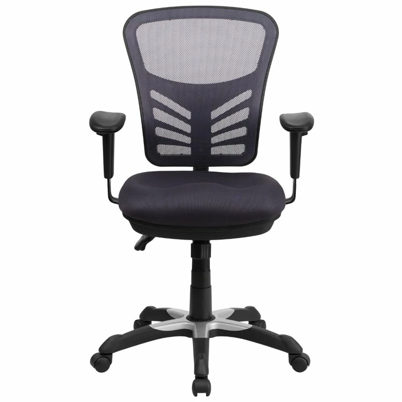 If you’re looking for an easy to adjust office chair than this triple paddle chair is an excellent choice. The colorfully padded mesh upholstery will add color to your space as well as keep you comfortable while performing tasks. Mesh office chairs can keep you more productive throughout your work day with its comfort and ventilated design. The mid-back design offers support to the mid-to-upper back region. The locking back angle adjustment lever changes the angle of your torso to reduce disc pressure. The contoured seat dissipates pressure points for greater comfort. Chair easily swivels 360 degrees to get the maximum use of your workspace without strain. The pneumatic adjustment lever will allow you to easily adjust the seat to your desired height. The adjustable armrests take the pressure off the shoulders and the neck, which minimizes the risk of pain. This comfortably designed computer chair will make a great option for your home or office space.