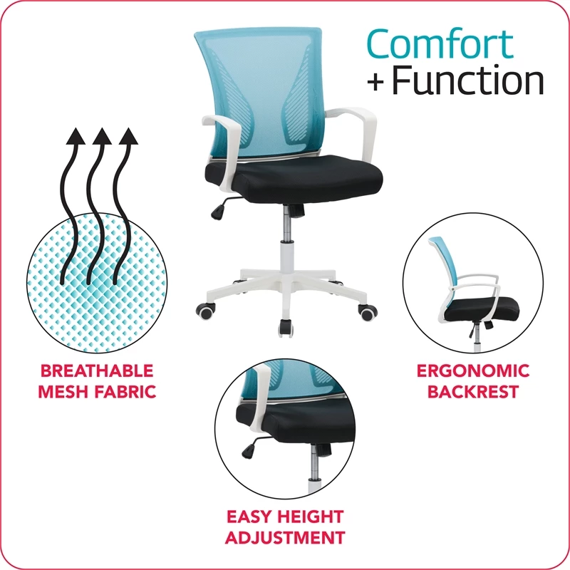 The ergonomic mesh back office chair is a great addition to any or office. A curved mesh back design creates a breathable, well-ventilated backrest with added lumbar support that helps keep you comfortable during your workday. The breathable padded seat is thick, resilient, and constructed of high-quality foam and breathable mesh cloth. The gas lift makes it easier to raise or lower the seat for the perfect position. In addition, the arms are connected to the back of the chair, so you don’t feel restricted during those long workdays.