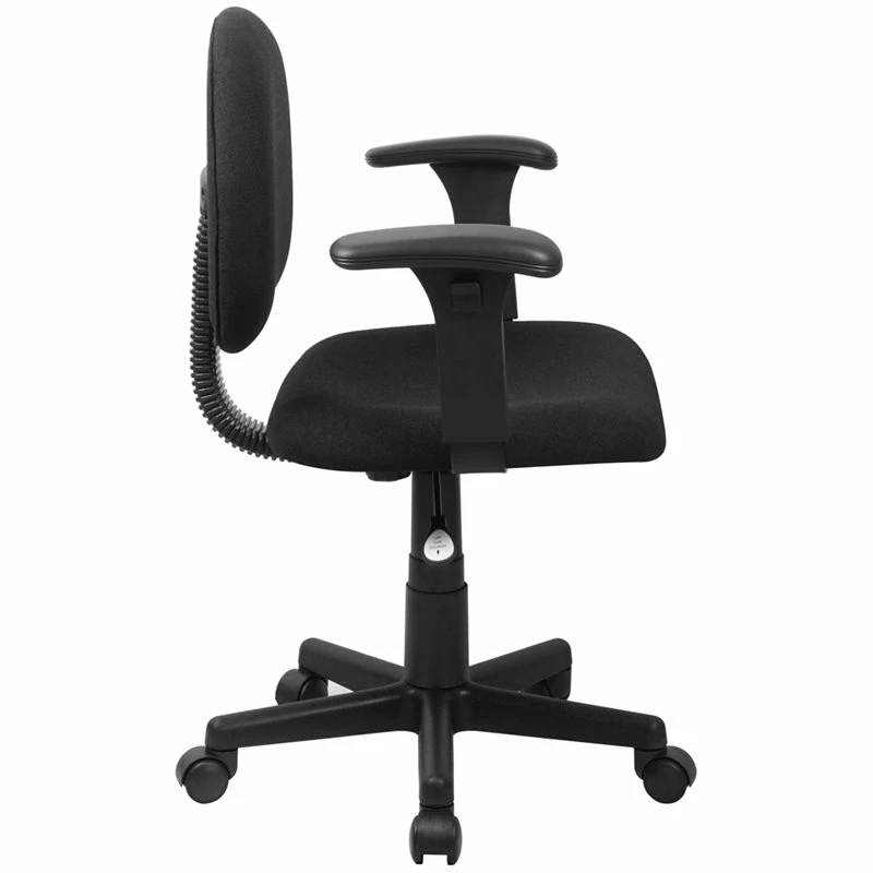 Get back to basics with this black, fabric upholstered task office chair. This chair is ideal for the more active user and was designed to support the mid-to-upper back region. The contoured seat dissipates pressure points for greater comfort while the waterfall front seat edge removes pressure from the lower legs and improves circulation. The back depth adjustment knob accommodates your upper leg length. Chair easily swivels 360 degrees to get the maximum use of your workspace without strain. Height adjustable padded arms relieve neck and shoulder pressure. The pneumatic adjustment lever will allow you to easily adjust the seat to your desired height. You can rely on this durable chair to get you through your work day or keep you comfortable while browsing the internet.