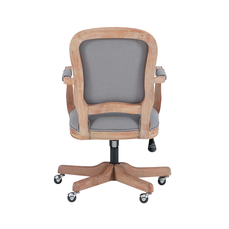 From its rustic farmhouse features and vintage design, the UrbanPro Office Chair will add French countryside charm to any home office or workspace. The driftwood-finished chair is upholstered in versatile light gray upholstery and comfort-cushioned for long hours spent at your desk. Completed with a sturdy, adjustable-height base and durable casters for easy maneuverability, it is the perfect addition for a home workspace or office.