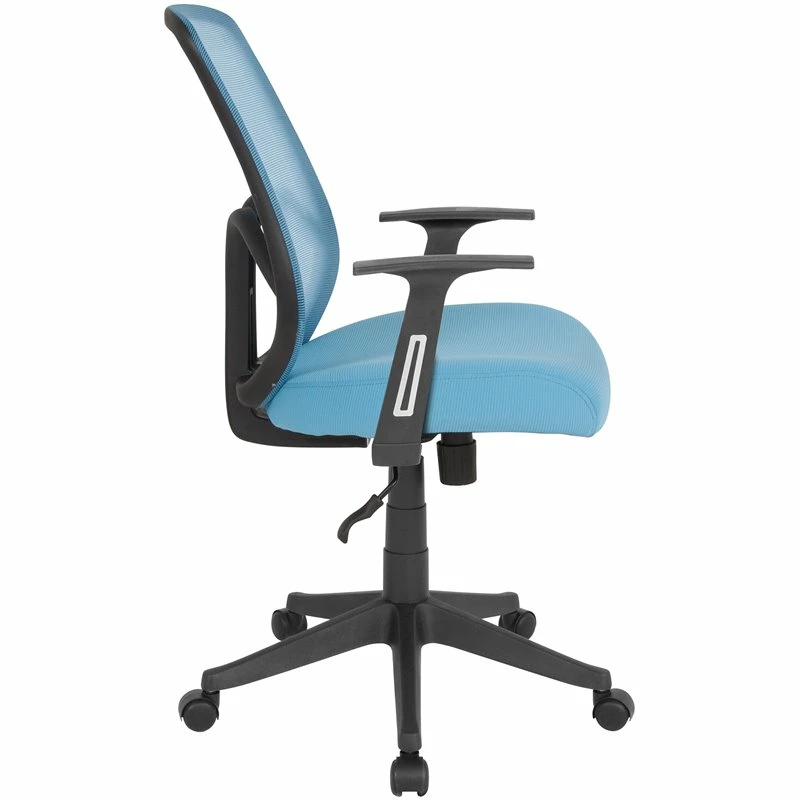 Breathe new life into your office, dorm or home office with this comfortable high-back mesh chair. The transparent mesh back allows air to circulate, keeping you cool no matter how high the pressure gets. The swivel seat is padded with CA117 fire retardant foam and has a waterfall front for leg comfort. Built-in lumbar support helps prevent back strain and muscle fatigue. Raise and lower the seat using the pneumatic seat height adjustment lever, conveniently located below the seat. The heavy-duty, nylon base with dual wheel casters makes it easy to roll across the floor. Whether you’re studying, browsing or on a tight deadline, this stylish chair will keep you cool and comfortable throughout your busy day.