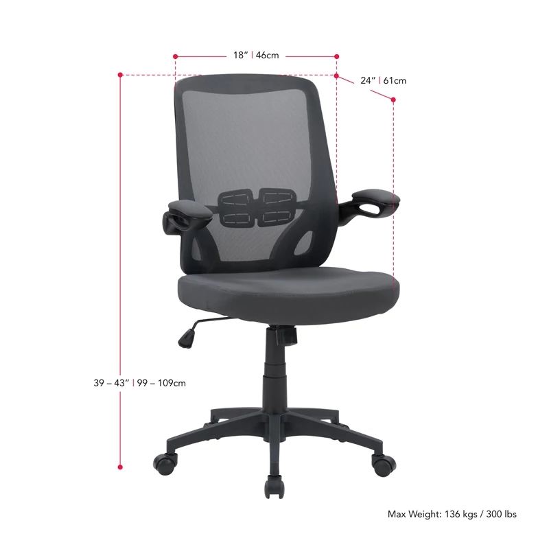 Our mesh back office chair is an excellent addition to any or office. The curved mesh back design creates a breathable, well-ventilated backrest with added lumbar support and will help you keep comfortable during your workday. The breathable padded seat is thick, resilient, and constructed of high-quality foam and breathable mesh cloth. The gas lift makes it easier to raise or lower the seat to the perfect position. In addition, the arms are connected to the back of the chair, so you don’t feel restricted during those long workdays.