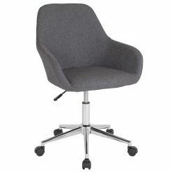 Reminiscent of an earlier time, the classic style of this bucket type task chair will always be popular. This chair boasts stylish integrated flared arms and dark gray fabric upholstery. This chair is ideal for those who spend the bulk of their day seated because of the mid back support that it offers to the mid to upper back region. Chair rotates 360 degrees to provide easy access to all of your work surfaces. A pneumatic seat height adjustment lever lets you easily position the chair at a height that is most comfortable for you. The chrome base provides a modern finish to this sophisticated versatile home or office chair. This retro-modern office chair is a great choice to complete the look in any office, reception, conference room or home office.