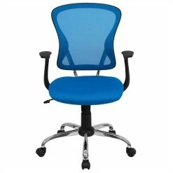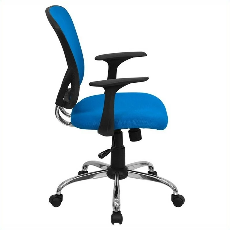 Having the right chair in your workspace is essential for your performance and well-being. Investing in a good task chair increases productivity, promotes good posture and gives a professional look to any office. This blue task chair is adjustable to accommodate many different body types. The breathable mesh back allows air to circulate to keep you cool. The colorful, generously padded mesh seat will add a vibrant, lively look to your space as well as keep you comfortable. A mid-back office chair offers support to the mid-to-upper back region. The waterfall front seat edge removes pressure from the lower legs and improves circulation while the arms take pressure off the shoulders. Chair easily swivels 360 degrees to get the maximum use of your workspace without strain. The pneumatic adjustment lever will allow you to easily adjust the seat to your desired height. The chrome base adds a stylish look to complement a contemporary office space. With its attractive styling and versatility, this chair is an excellent choice for the office, dorm, classroom or home.
