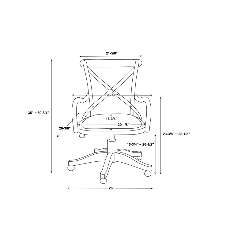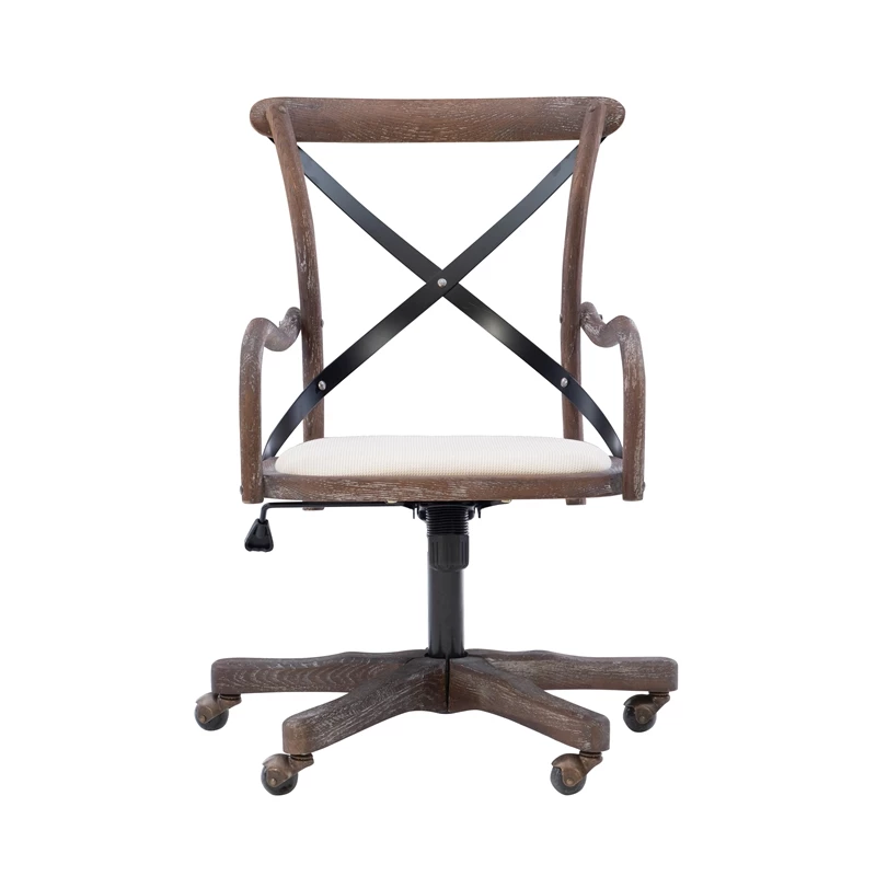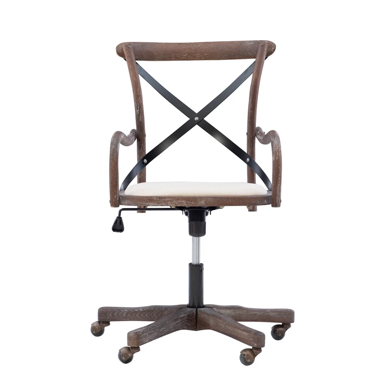 Add stylish seating to your workspace with the UrbanPro Office Chair. The gray-washed wood finish is accented by a black metal X back and neutral fabric seat. Antique brass casters make for easy mobility around your office. The adjustable seat height allows the chair to easily work with a variety of desk and table heights. Perfect for any home workspace or office.