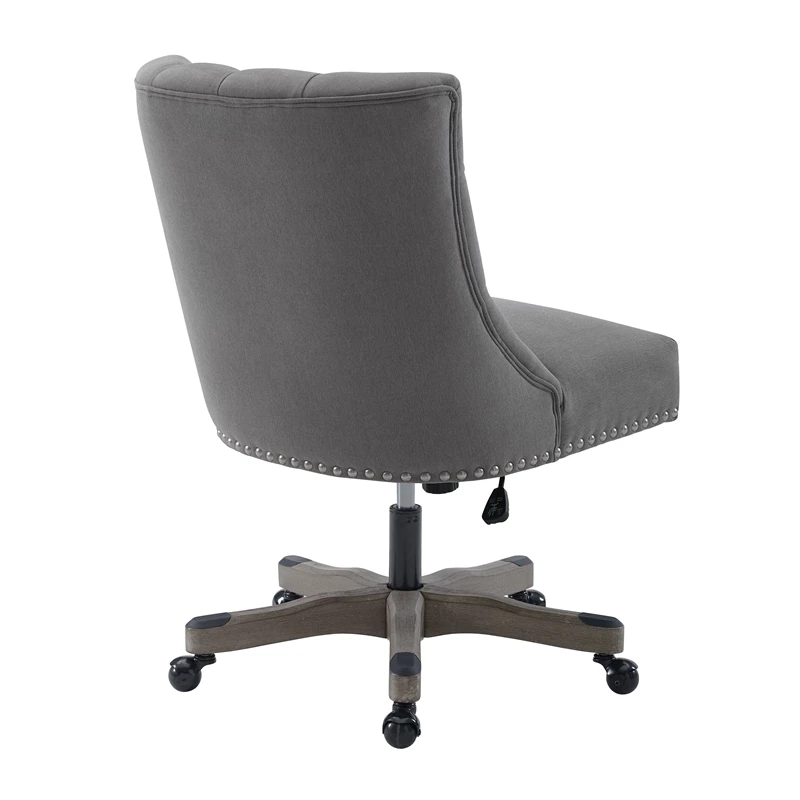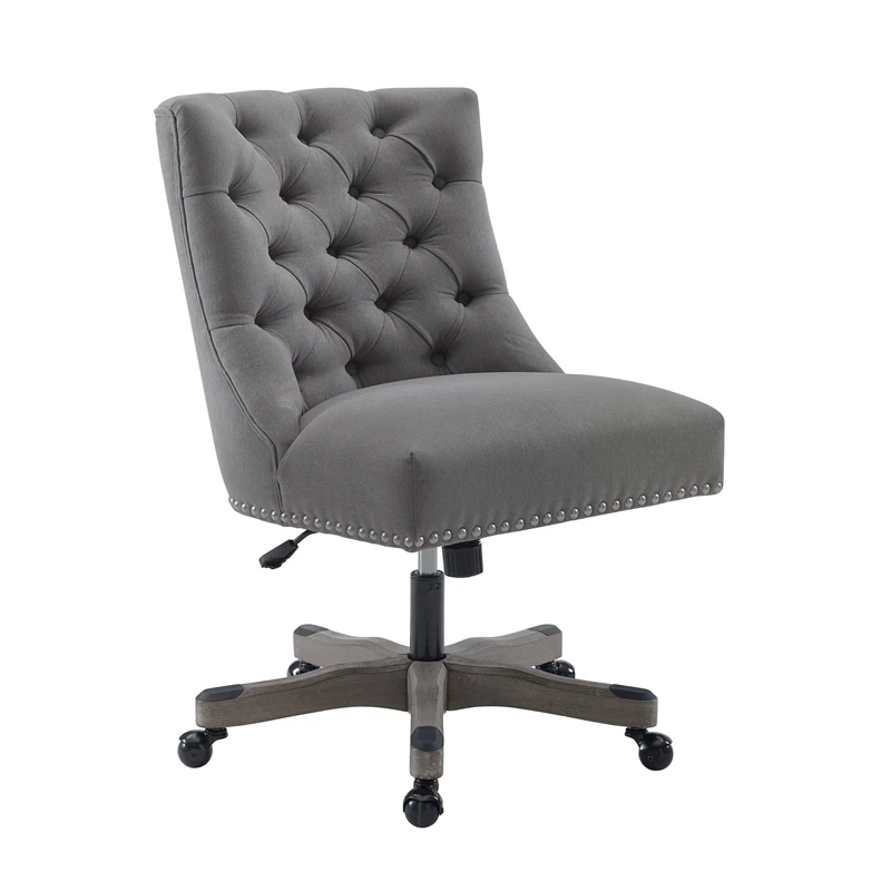 The UrbanPro Office Chair adds style to your workspace without sacrificing comfort. This plush chair features a button-tufted back, brushed silver nailheads, and smooth swooping sides set upon a stable, gray-wash wood base. Durable metal casters offer easy maneuverability through your workspace, and a gas lift allows the chair to easily adjust to fit a variety of desk and table heights. Perfect for heavy-duty wear, the office chair is upholstered in LiveSmart fabric that is both water resistant and stain-resistant.